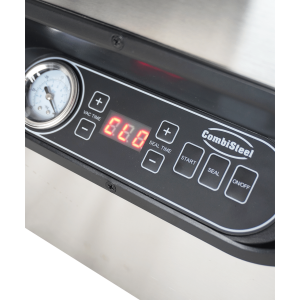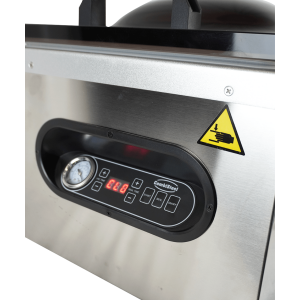 Deze professionele vacuümmachine van roestvrij staal (RVS) is de ideale oplossing voor het langer vers houden van je ingrediënten. Dankzij de krachtige vacuümpomp verwijdert de machine snel en efficiënt lucht, waardoor voedingsstoffen, smaak en textuur optimaal behouden blijven. Met een sealbreedte van 300 mm en een cyclustijd van 5-60 seconden werk je snel en effectief, ideaal voor zowel professioneel als thuisgebruik. De afmetingen zijn 425x359x366 mm (LxDxH) – vermogen 0.63 kW – gewicht 25 kg.