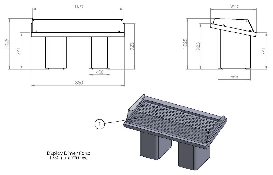 De Combisteel visvitrine self-service 1.9 is ideaal voor de snelle, klantgerichte presentatie van verse vis. Dankzij het open ontwerp hebben klanten direct toegang, terwijl plexiglazen schuifdeuren aan de achterzijde eenvoudig bijvullen mogelijk maken. De vitrine is gemaakt van hygiënisch, corrosiebestendig AISI 304 roestvrij staal en voorzien van een ruime etaleeroppervlakte van 176×72 cm. De vitrine is niet voorzien van een koelsysteem en is daarmee ideaal voor kortdurende presentatie in omgevingen met een continue doorstroom van klanten en regelmatige aanvulling van vis. Afmetingen: 1880x920x920 mm (LxDxH) – Gewicht: 90 kg.