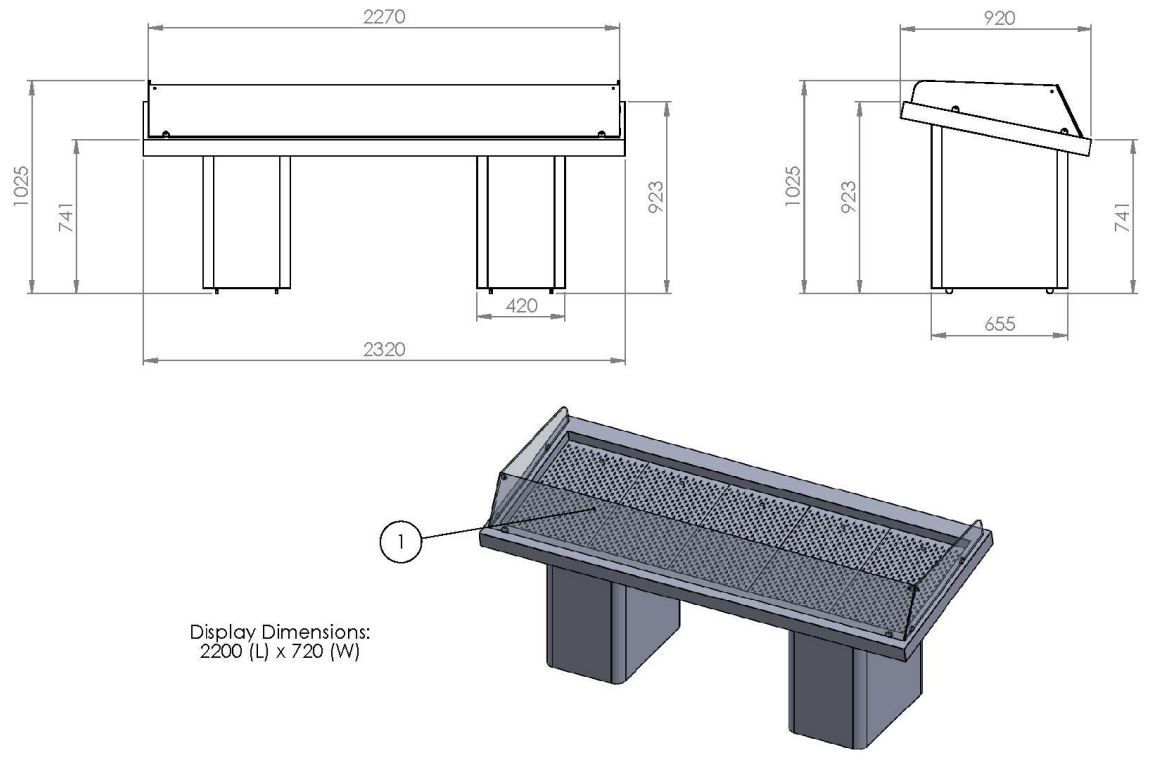 De Combisteel visvitrine self-service 2.3 is ideaal voor de snelle, klantgerichte presentatie van verse vis. Dankzij het open ontwerp hebben klanten direct toegang, terwijl plexiglazen schuifdeuren aan de achterzijde eenvoudig bijvullen mogelijk maken. De vitrine is gemaakt van hygiënisch, corrosiebestendig AISI 304 roestvrij staal en voorzien van een extra ruime etaleeroppervlakte van 220×72 cm. De vitrine is niet voorzien van een koelsysteem en is daarmee ideaal voor kortdurende presentatie in omgevingen met een continue doorstroom van klanten en regelmatige aanvulling van vis. Afmetingen: 2320x920x920 mm (LxDxH) – Gewicht: 115 kg.
