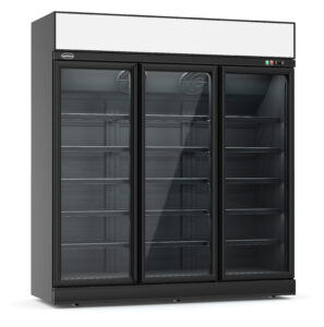 Maak kennis met onze indrukwekkende zwarte retail vrieskast met 3 glasdeuren, speciaal ontworpen voor supermarkten en professionele instellingen!