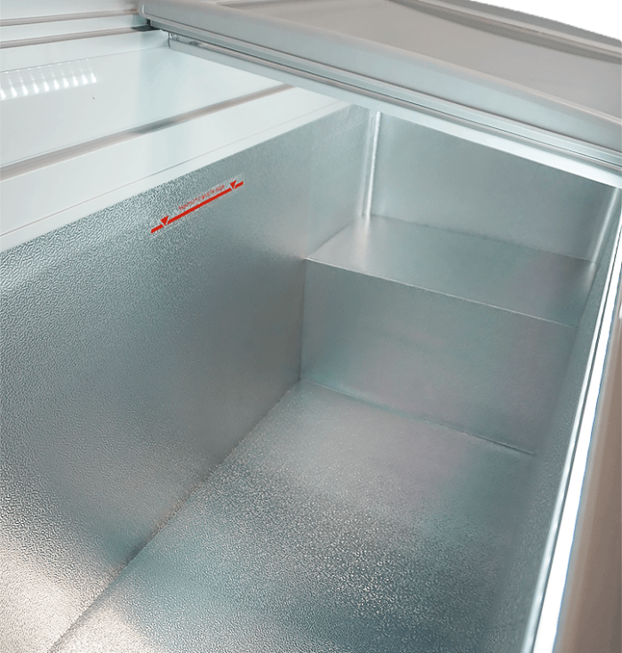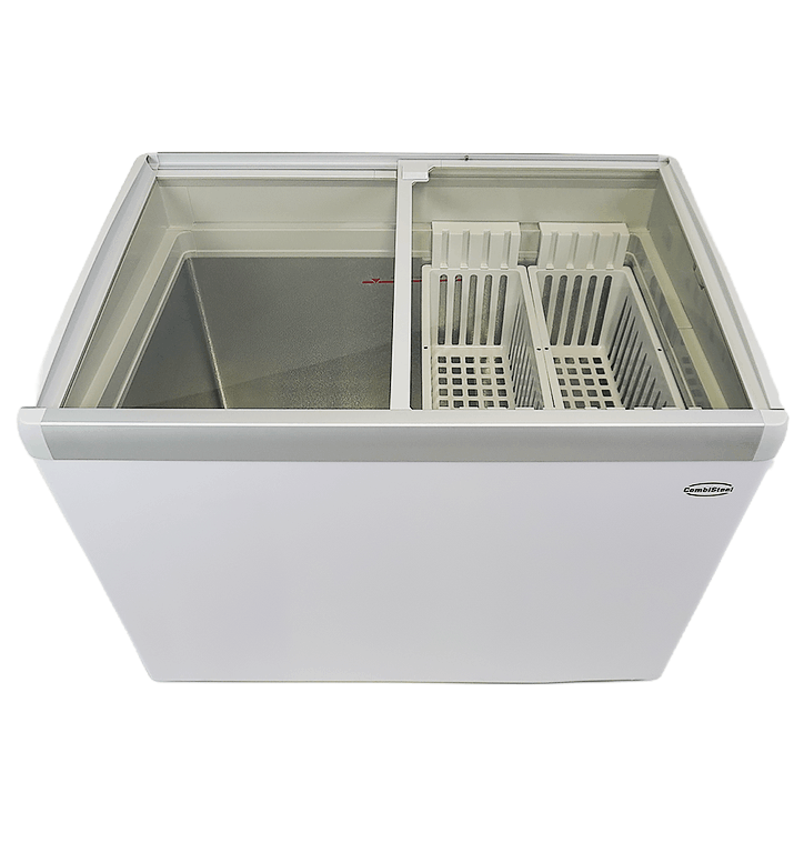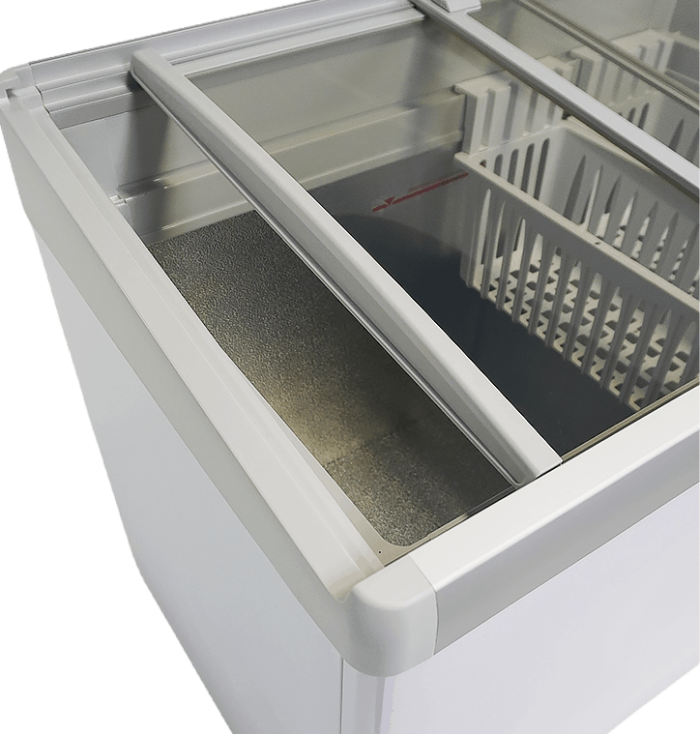 Maak kennis met onze veelzijdige vrieskist met glasdeksel Lotte-586, dé flexibele oplossing voor zowel koelen als vriezen!