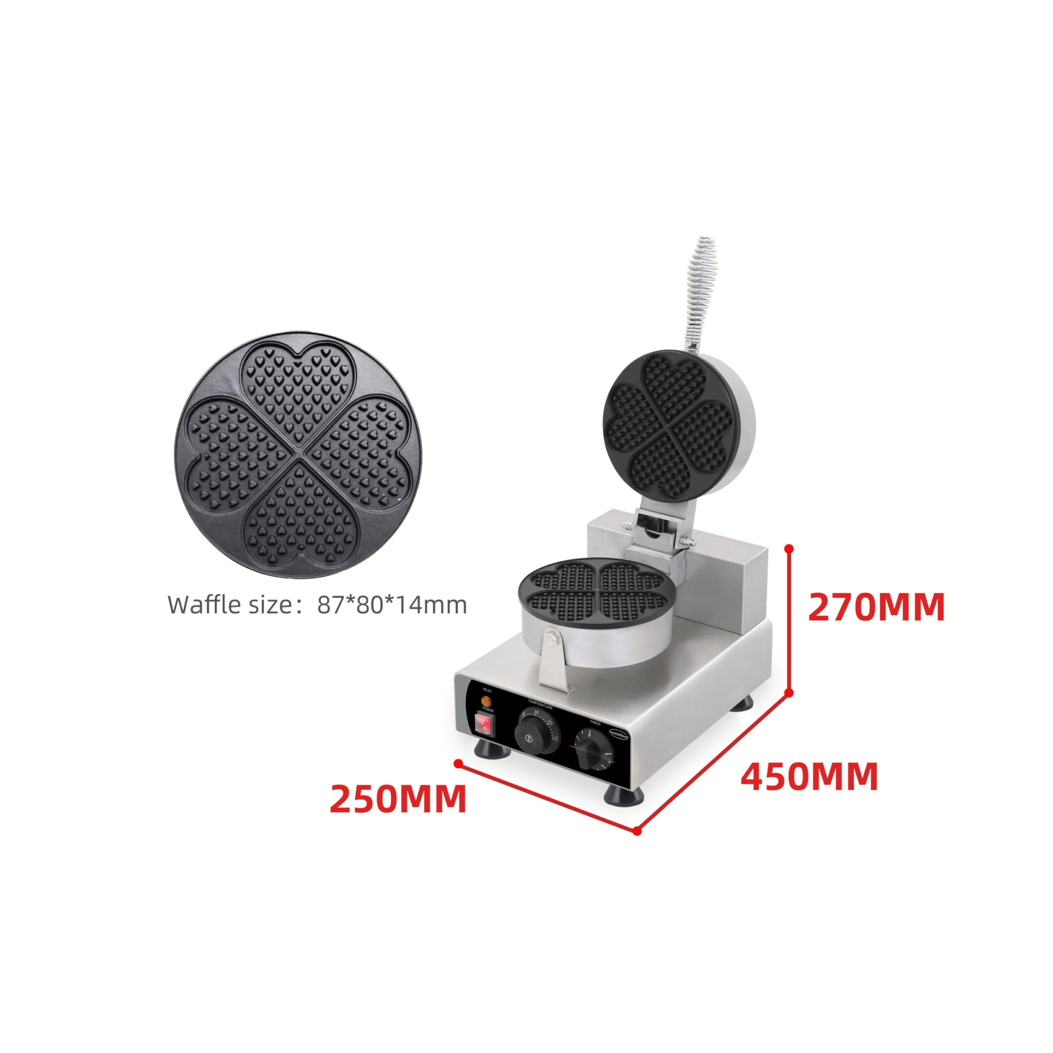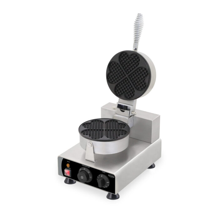 Geef je ontbijt of dessert een romantische twist met dit wafelijzer dat 4 perfect gevormde hartjeswafels tegelijk bakt. Of het nu voor een speciaal moment is of een creatieve aanvulling op je cafémenu, dit stijlvolle wafelijzer staat garant voor heerlijke resultaten en een unieke presentatie. Met zijn robuuste constructie en gebruiksvriendelijke ontwerp kun je in een mum van tijd heerlijke wafels bereiden. Bovendien trekt het de aandacht met zijn strakke, moderne uitstraling. De afmetingen zijn 450x250x270 mm (LxDxH) – vermogen 1 kW – gewicht 9 kg.