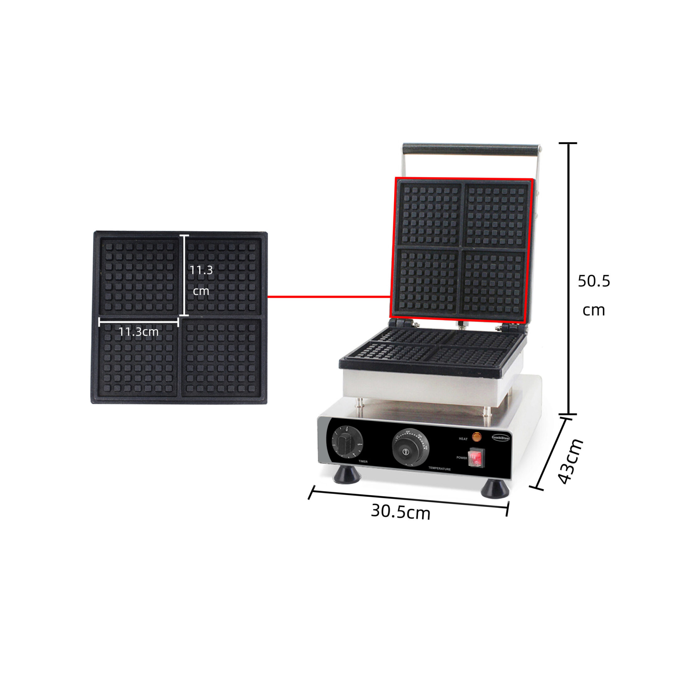 Vierkante bakplaten: bak 4 wafels in één keer.