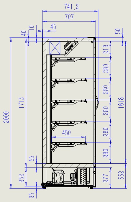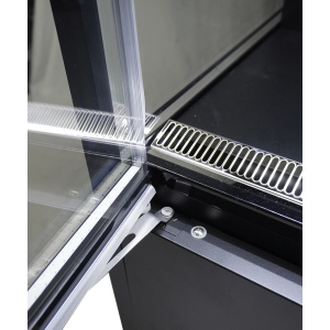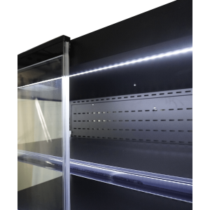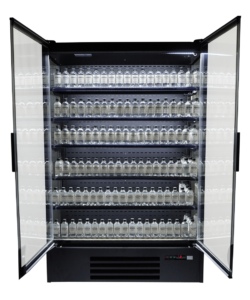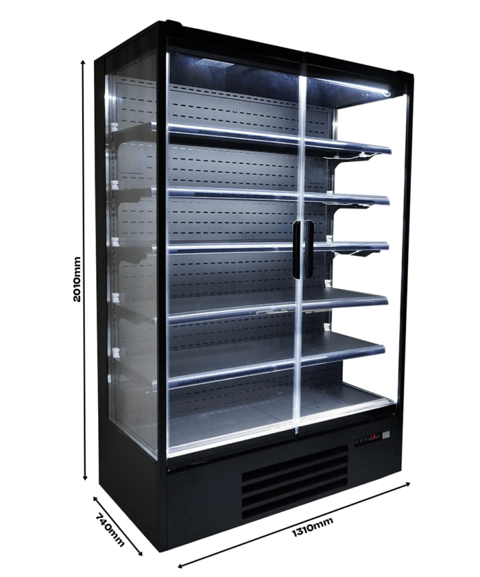Dit slanke, vrijstaande model heeft een zwarte afwerking, 2 zelfsluitende glasdeuren en 5 verstelbare schappen – ideaal voor het aantrekkelijk presenteren van gekoelde producten zoals dranken, zuivel of snacks. Dankzij geforceerde luchtkoeling en automatische ontdooiing biedt het consistente prestaties met minimaal onderhoud. Heldere LED-verlichting onder elk schap verhoogt de zichtbaarheid van producten, terwijl het milieuvriendelijke R290 koelmiddel bijdraagt aan duurzaamheidsdoelstellingen. Ontworpen voor omgevingen tot 25°C, is dit een plug-and-play oplossing voor elke professionele ruimte. Afmetingen: 1310x740x2010 mm (BxDxH) – verbruik 0,55 kW – inhoud 1292 liter – temperatuur +2/+8ºC – etaleeroppervlak 3,14 m² – gewicht 260 kg.