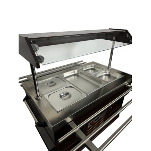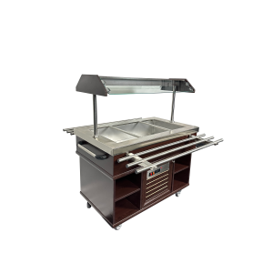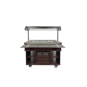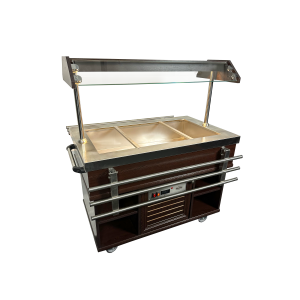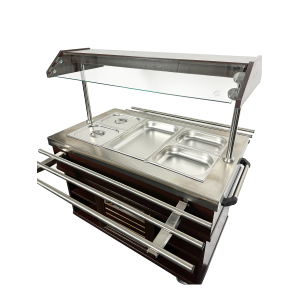 Dit veelzijdige warme buffet is ideaal voor restaurants, hotels, cateraars en andere horecagelegenheden waar versheid en presentatie hand in hand gaan. Dankzij het ruime GN 3/1-formaat biedt dit buffet voldoende capaciteit om diverse gerechten op de juiste temperatuur te presenteren. Het stijlvolle en robuuste ontwerp, uitgevoerd in de kleur mahonie, past moeiteloos in elke professionele omgeving. De efficiënte verwarmingstechnologie zorgt ervoor dat gerechten op de gewenste temperatuur blijven, terwijl de LED-verlichting een moderne uitstraling biedt en de gerechten optimaal verlicht voor uw gasten. De afmetingen zijn 1200x700x1400 mm (LxDxH) – verbruik 3 kW – temp. +30/+90ºC – gewicht 106 kg.