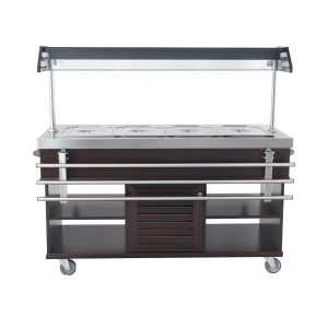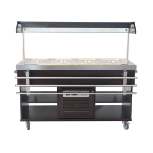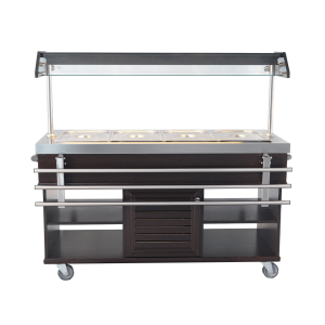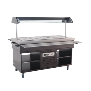Dit veelzijdige warme buffet is ideaal voor restaurants, hotels, cateraars en andere horecagelegenheden waar versheid en presentatie hand in hand gaan. Dankzij het ruime GN 4/1-formaat biedt dit buffet voldoende capaciteit om diverse gerechten op de juiste temperatuur te presenteren. Het stijlvolle en robuuste ontwerp, uitgevoerd in de kleur mahonie, past moeiteloos in elke professionele omgeving. De efficiënte verwarmingstechnologie zorgt ervoor dat gerechten op de gewenste temperatuur blijven, terwijl de LED-verlichting een moderne uitstraling biedt en de gerechten optimaal verlicht voor uw gasten. De afmetingen zijn 1500x700x1400 mm (LxDxH) – verbruik 3 kW – temp. +30/+90ºC – gewicht 115 kg.
