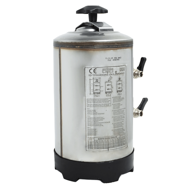 Maak korte metten met kalkaanslag en bescherm jouw apparatuur met deze professionele waterontharder van 8 liter. Dankzij de hoogwaardige harskolom worden calcium- en magnesiumionen effectief verwijderd, zodat koffiezetters, combi-steamers, vaatwassers en ijsmachines langer optimaal blijven presteren. De behuizing is vervaardigd uit duurzaam RVS AISI 304, ideaal voor intensief gebruik in bars, keukens en restaurants. Met een compacte doorsnee van 185 mm, hoogte 400 mm en eenvoudige aansluiting 3/8″–3/4″ levert de ontharder betrouwbaar zacht water bij een waterdruk van 1–8 bar. Zoutverbruik per regeneratie: 1 kg.